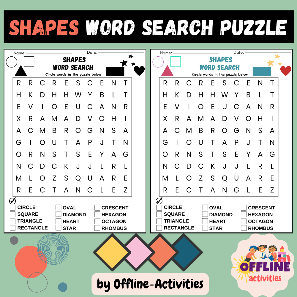 🔍 Features of Our "Shapes Word Search Puzzle Worksheet Activity:"
